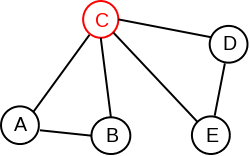 Primer 2.5.2. Ukoliko u povezanom grafu prikazanom na slici 3 uklonimo čvor \(C\), graf prestaje da bude povezan, te je čvor \(C\) jedna artikulaciona tačka ovog grafa. Štaviše, neposredno se proverava da je čvor \(C\) jedina artikulaciona tačka u ovom grafu.