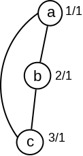 Primer 2.5.7. Primetimo da za koren \(a\) DFS drveta grafa sa slike 12 i njegovo dete \(b\) važi uslov \(L(b)=a.\mathit{Pre}\), tj. čvor \(a\) ima dete iz kojeg se ne možemo povratnom granom vratiti “niže” od čvora \(a\), a pritom čvor \(a\) nije artikulaciona tačka.